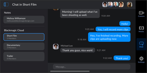 Before recording, log into Blackmagic Cloud and select a DaVinci Resolve project. The media will automatically upload and sync to all members of a project after each recording.